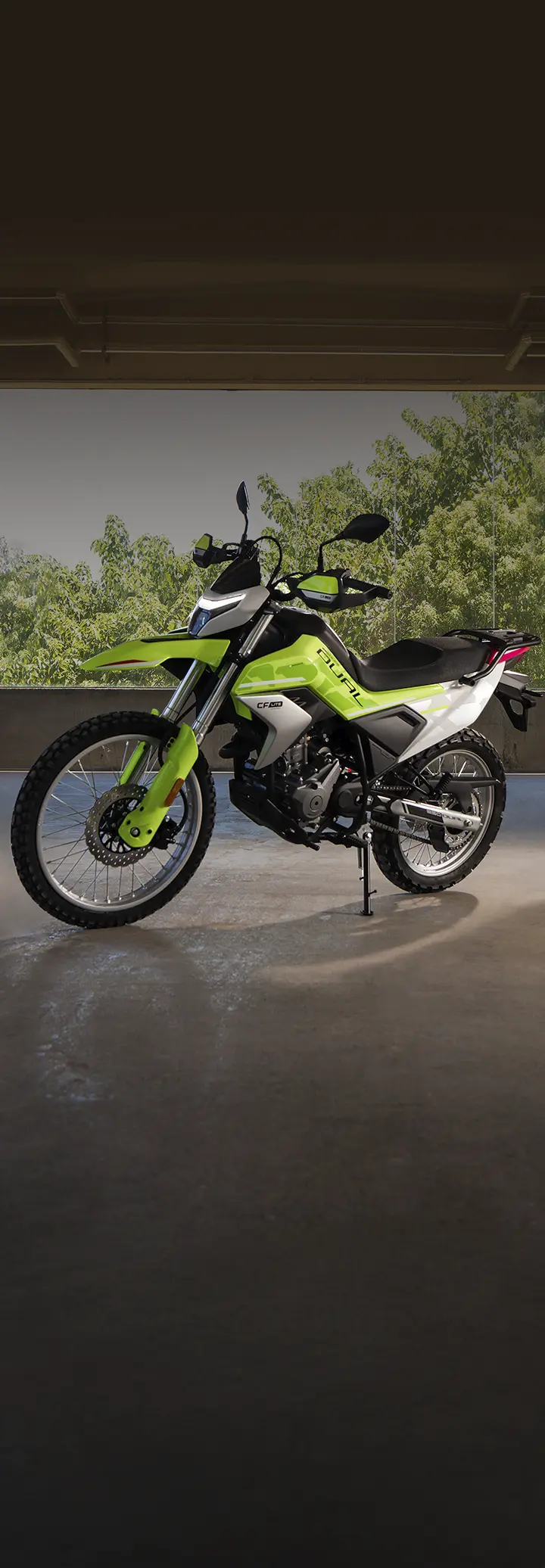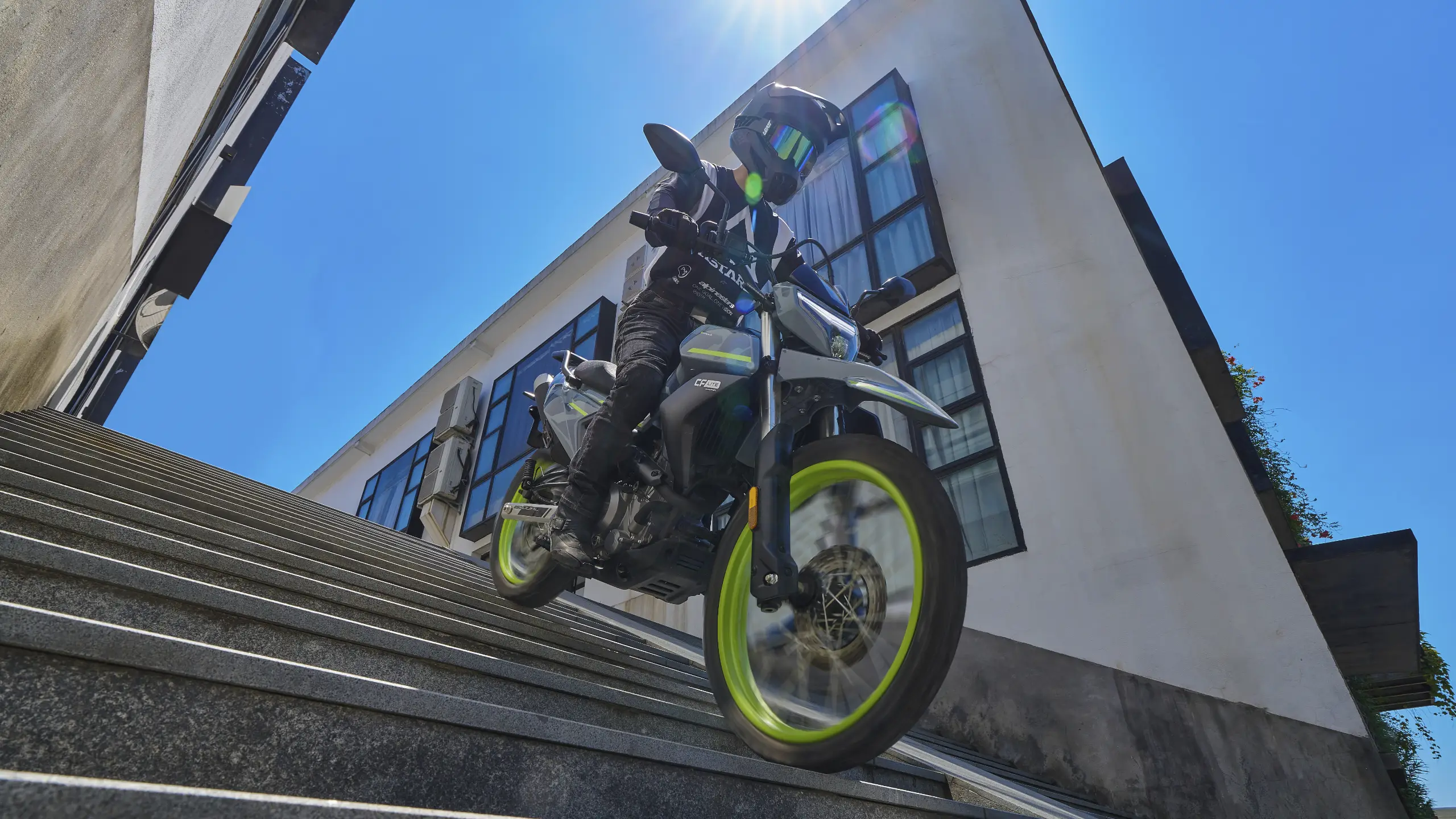 Su diseño se inspira en el espíritu adventure de CFMOTO, con una carrocería estilizada y una aerodinámica que mejora el control, reduce la resistencia al viento y aporta una conducción estable y precisa en cualquier tipo de terreno.